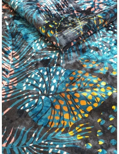 Tkanina AWATAR, to przyciągający wzrok roślinny, wielokolorowy nadruk utrzymany w nowoczesnym stylu z delikatnym połyskiem. Nadruk wykonany jest na tkaninie welurowej, w związku z czym tkanina jest miękka, miła i przyjemna w dotyku. Tkanina jest też mocna, wytrzymała i przyjazna zwierzętom. Jej niewątpliwą zaletą jest możliwość prania.